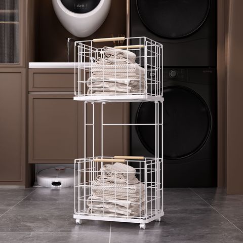 Ins Home Conveniente Solução De Armazenamento Doméstico Dupla Camada Móvel Metal Basket Rack Retângulo para Banheiro Roupas Sujas